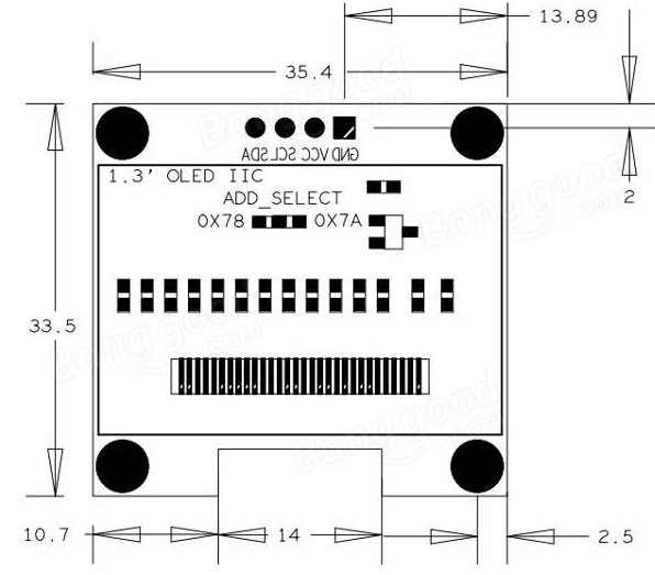 The 1.3-inch OLED 128*64 dot matrix, so in the middle of the screen production took 128 row. When using SSD1306 program point SSH1106 screen, only need to change address to 0x02 row to start.