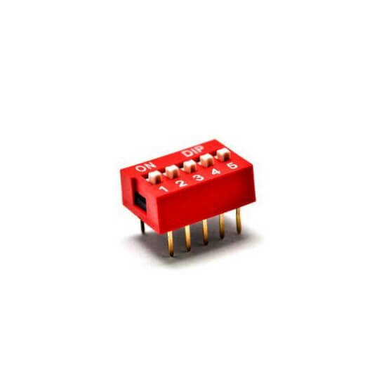 DIP switch with 6 individual switch positions. The pins have 2.54mm (.1″) spacing – fits great into a breadboard! Works great as general control switches.