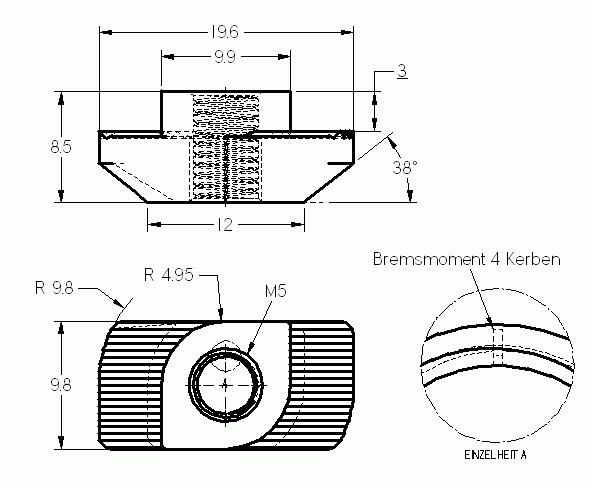 B10 matica do posunná matica do drážok 19x9,7x8,8 mm, M5, drážka 10