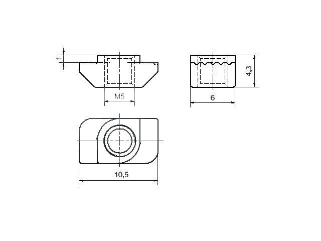B6 matica do posunná matica do drážok 11,5x5,7x4,2 mm, M5, drážka 6