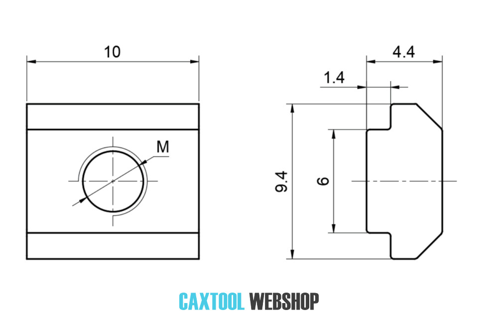 B6 matica do posunná matica do drážok 10x9,4x4,4 mm, M4, drážka 6