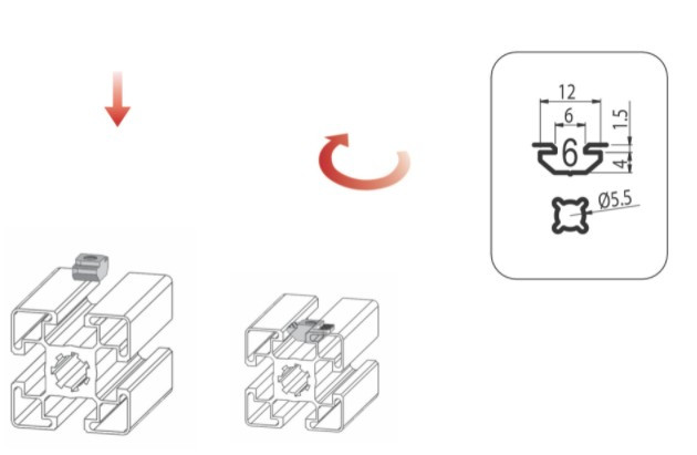 B6 matica do posunná matica do drážok 11,5x5,7x4,2 mm, M4, drážka 6