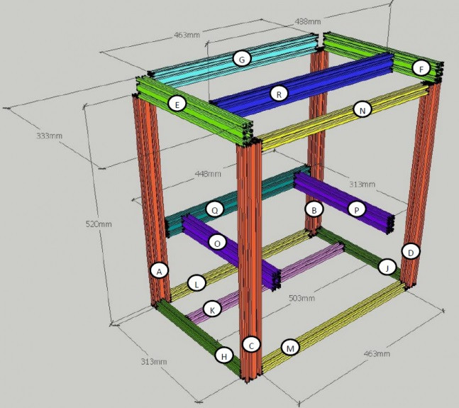 :V-Slot 2040 4 x 520mm - A, B, C, D