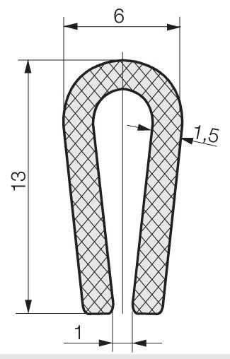EPDM chránič okrajov 1417 11,5 x 1,5mm profil U
