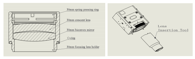 Focusing system: 1 pc biconvex lens + 1 pc meniscus lens.