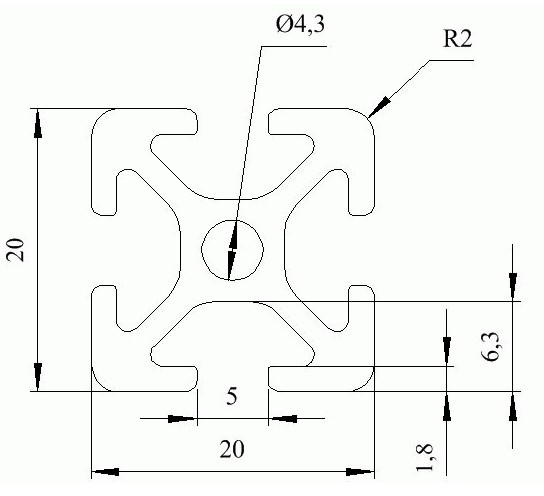 Item komp. hliníkový Profil 20 x 20 mm, drážka 5