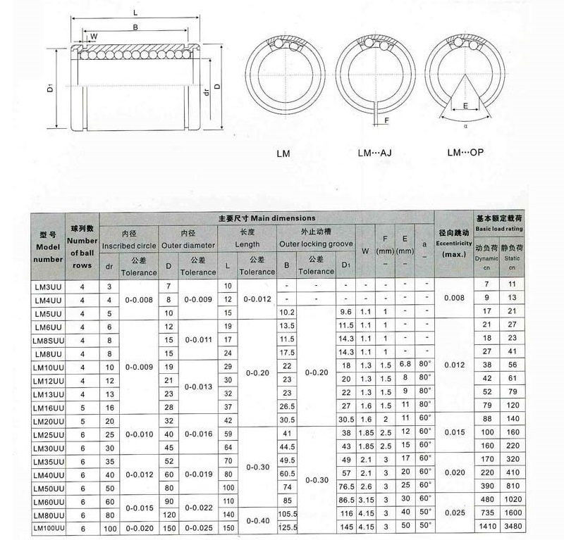 1. Lineárne guličkové ložisko, puzdro