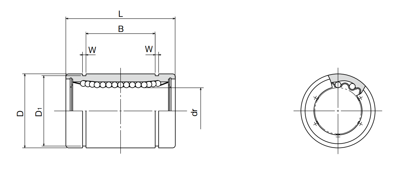1. Lineárne guličkové ložisko, puzdro