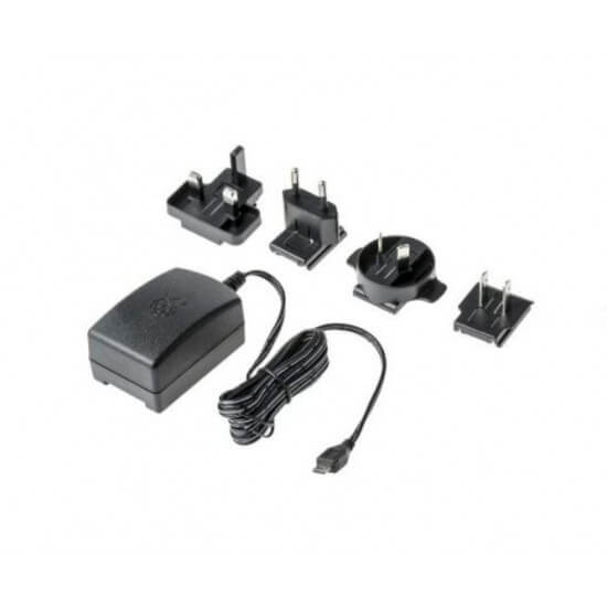 This Pi Foundation approved power supply unit (PSU) for the Pi 3, is available at RS in both black (RS 909-8135) and white (RS 909-8126) colours. The power supply is an integrated cable and microUSB plug. There are also four interchangeable mains adaptors — you can use the PSU in the UK, Europe, Australia and the United States.