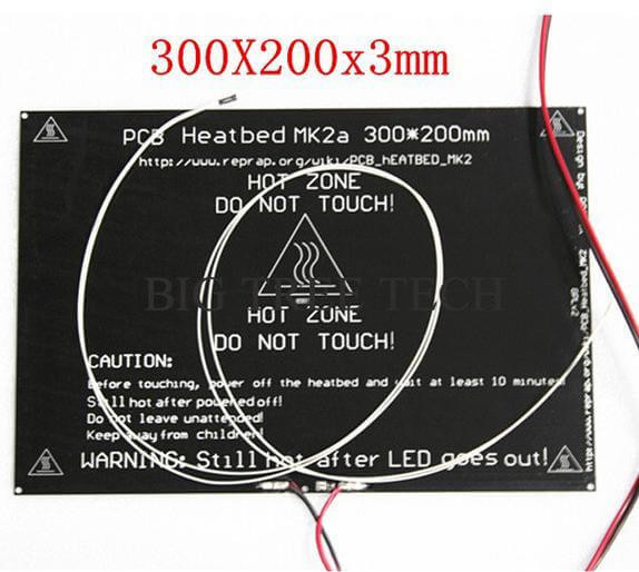 MK2A 300x200x3.0mm Aluminum Heatbed + LED Resistor + 60cm Cable + Thermistors