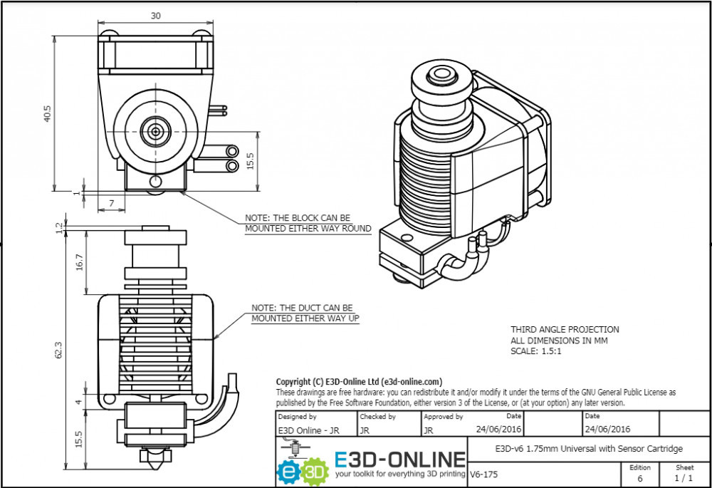 Kit includes: 1 x V6 HeatSink 1.75 mm