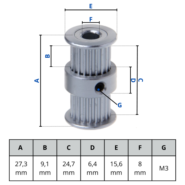Remenice GT2,6mm s dvojitou hlavou, diera 8mm, 20T