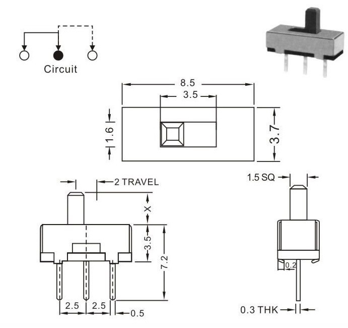 Main Body Size(not include Pins & Knob): 8.5 x 3.7 x 3.9mm