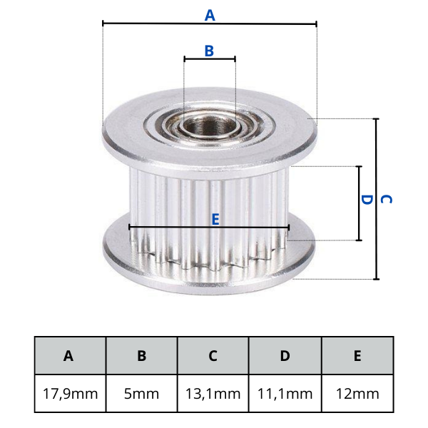 Napínacie remenice GT2-10mm s ložiskom 5mm – s ozubením 20T