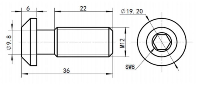 B10 central bolt hexagon head M12x30