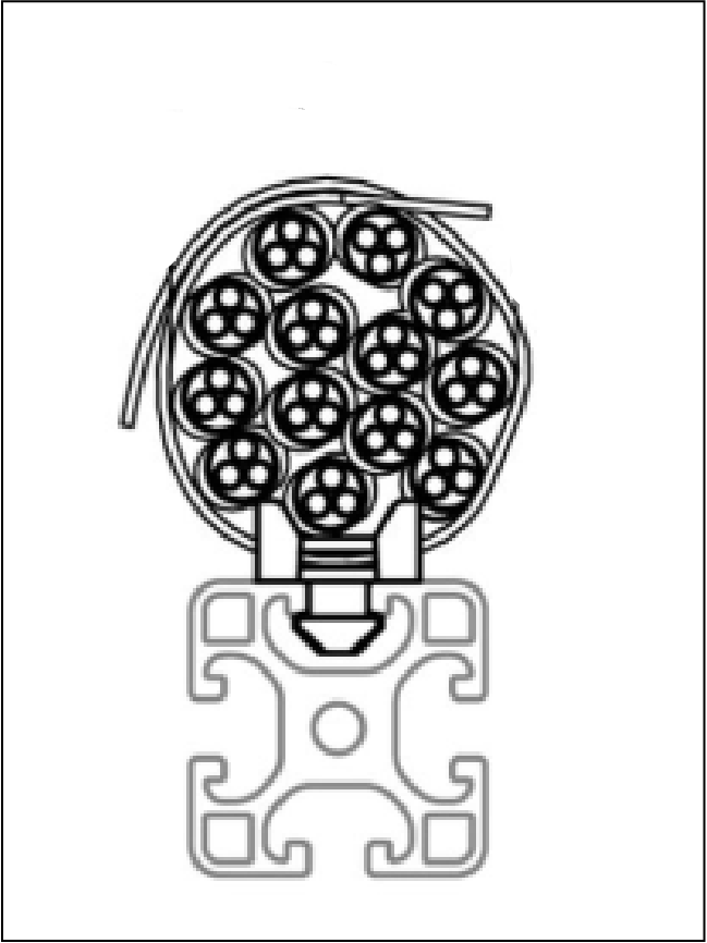 The Cable bracket is used to fasten cables. The Cable bracket can be inserted into the profile groove at any point and is fixed securely in the groove by turning it 90°.