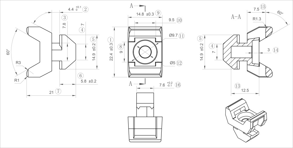 The Cross cable binding block is used to fasten cables. The Cross cable binding block can be inserted into the profile groove at any point and is fixed securely in the groove by turning it 90°.