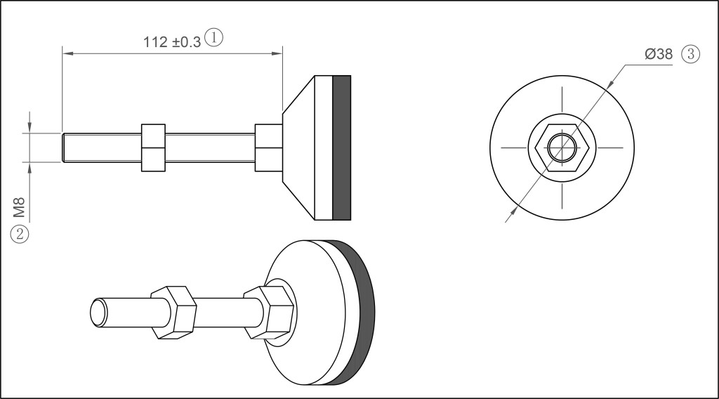 B8/I8 Leveling foot D40-M8*100 with non-slip pad