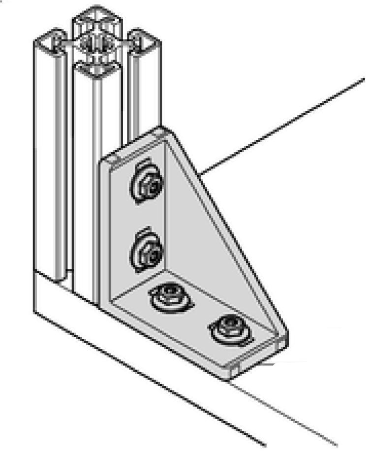 This corner bracket can be mounted with T-slot nuts, screws, hammer head nuts. There are many versions in our range.