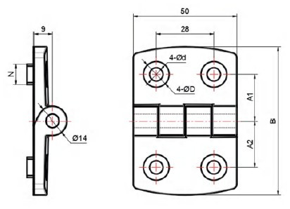 The hinge is used installation of a door or window where the profiles are 40x40.