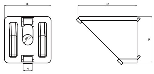 B8 corner bracket 45 degree 30x30 mm, 8mm groove