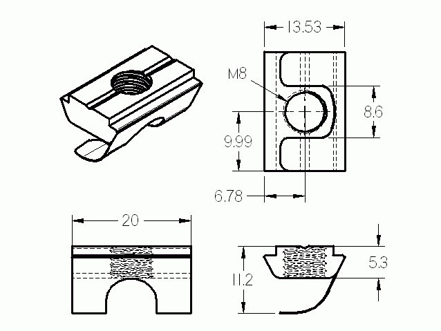 B10 matica do posunná matica do drážok 20x13,8x5,3 mm, M8, drážka 10
